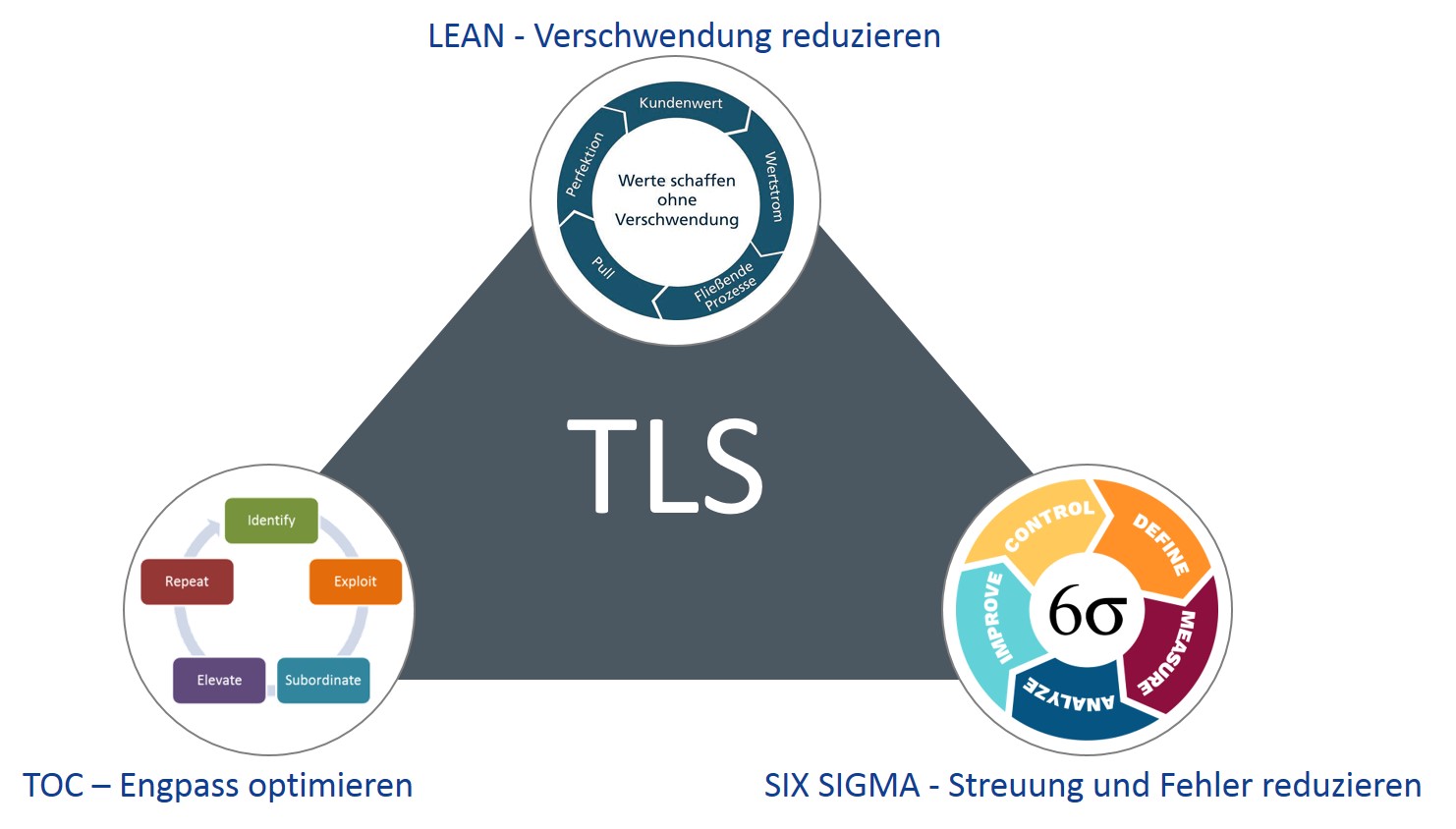 Die Symbiose aus ToC, Lean Management und Six Sigma (TLS) führt zu einer hybriden Managementphilosophie, die die stärken der drei Methoden optimal Verknüpft und somit die Effizienz und schließlich die Perfomance der Organisation nachhaltig steigert.