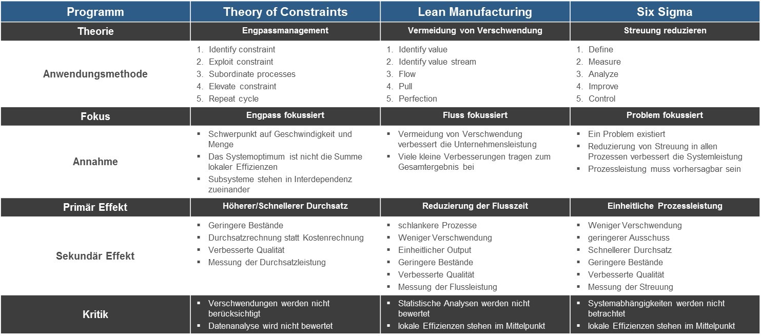 Synergien zwischen Lean Management, Theory of Contraints und Six Sigma